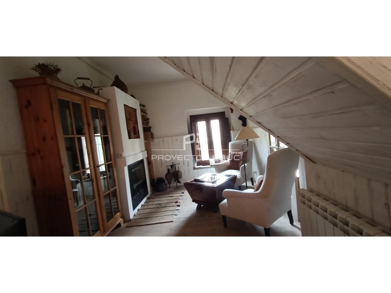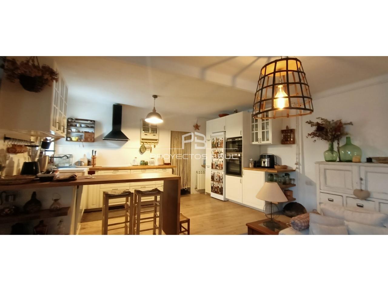 A la vivienda accedemos desde una pequeña entrada y, a continuación, nos da paso a un amplio salón-comedor con una acogedora zona de estar con chimenea tipo insert, un rincón muy cálido y todo ello junto a la cocina en un espacio diáfano y familiar con acabados que nos llevan a diferentes épocas.