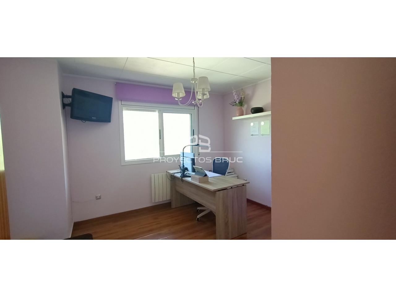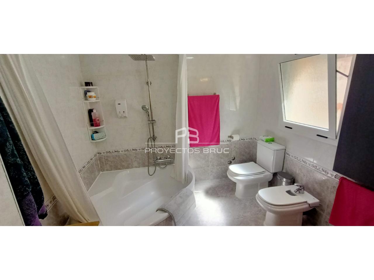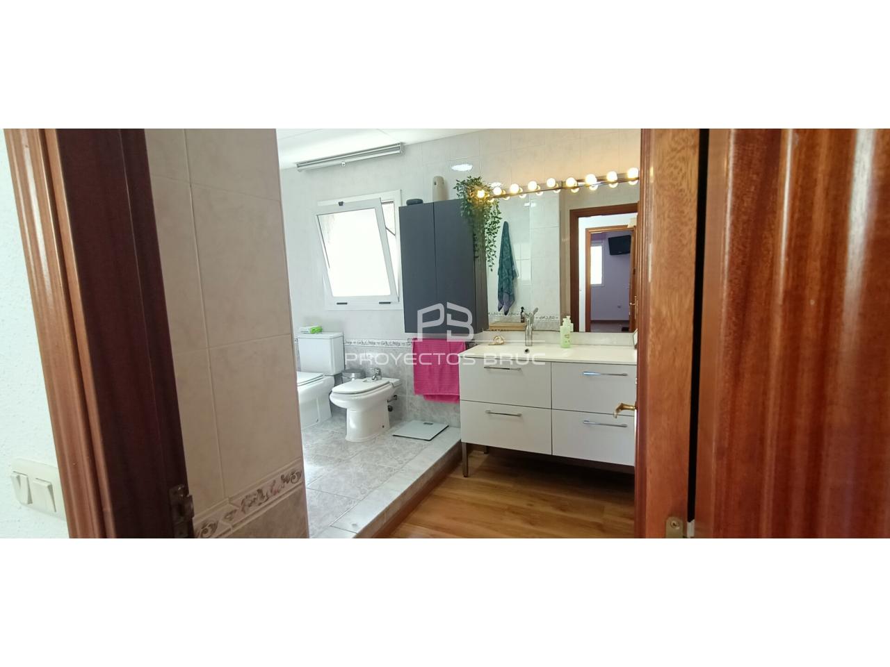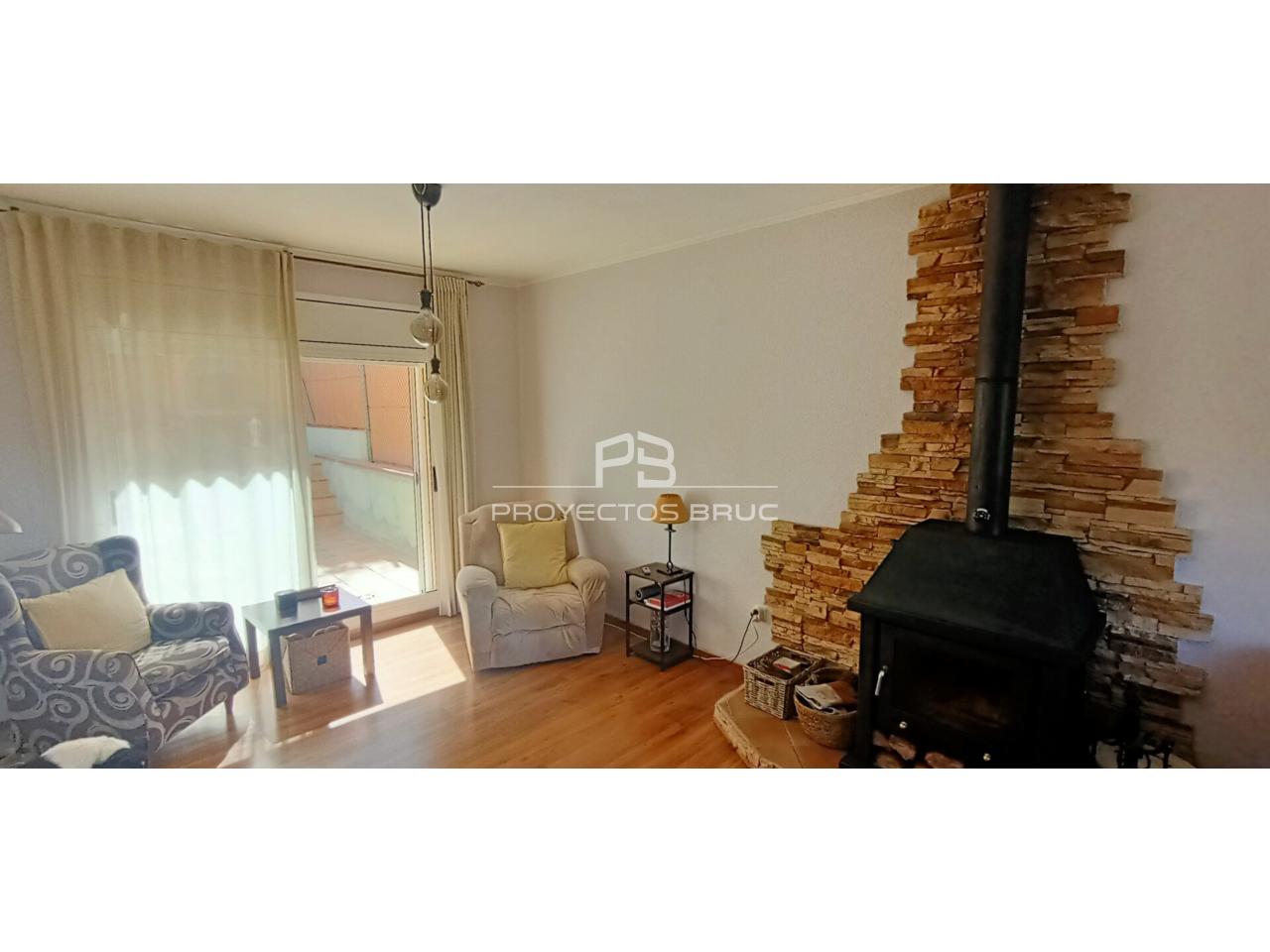 Entramos en la vivienda al recibidor dándonos paso al salón-comedor con terraza con vista a Montserrat, cocina independiente muy práctica con la salida al patio, acceso directo al garaje y aseo de cortesía.