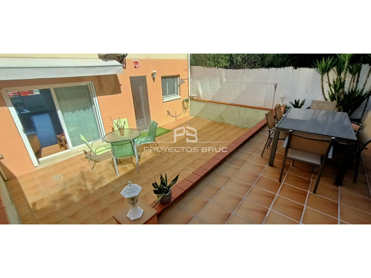 Patio en la entrada de la casa y hacia el garaje y otro patio de aprox. 60m2 a pie del salón y cocina, muy soleado con toldo motorizado y barbacoa para disfrutar de excelentes momentos del día a día.